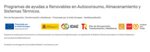 Esta actuación ha sido financiada a través de los programas de incentivos al autoconsumo y almacenamiento con fuentes de energía renovable, en el marco del Plan de Recuperación, Transformación y Resiliencia, financiado por la UNIÓN EUROPEA – NEXTGENERATIONEU.